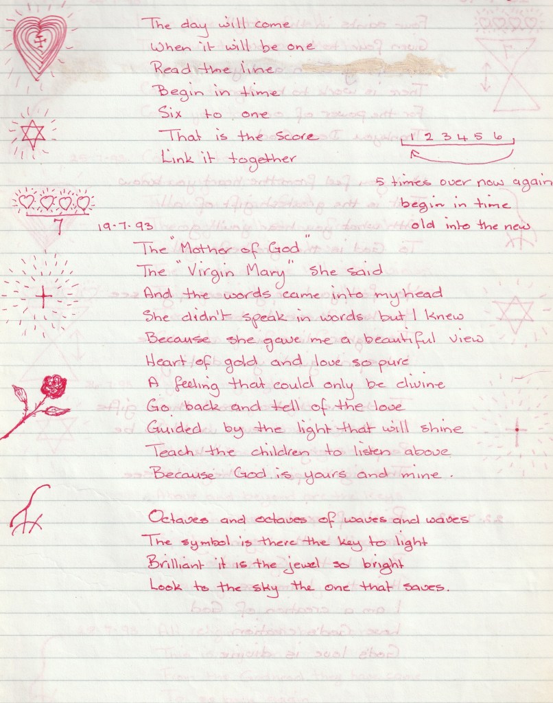 When I had my near death experience in 1989, an experience I will never forget the course of the tremendous impact this had on my life, an experience that went from the out of body state of grace, love and light the one divine consciousness with everything, total bliss, and then being spoken to in the light through my mind by the most radiant being whom told me she was the “Mother of God” and I was shown my life, A review of the past, present and future shown all of the feelings and actions that had passed in my life and then being told to return, “it wasn’t my time to die”. This I didn’t want to do, then I was shown the future and I knew things were going to change in the world, I was told I had to return to learn, understand, fight for my right, teach the children and I was going to write a book.